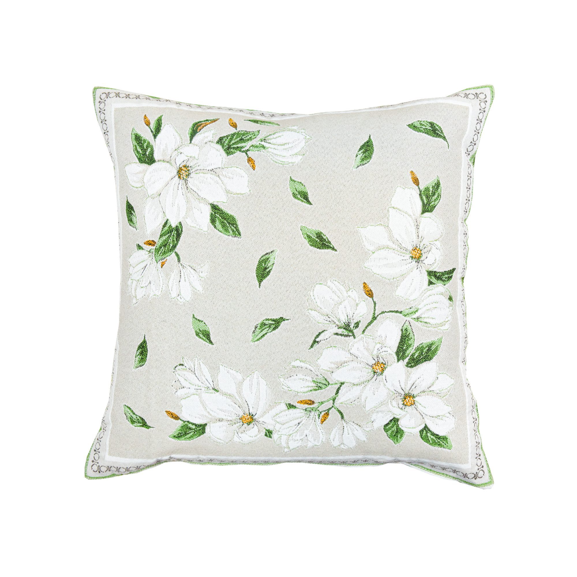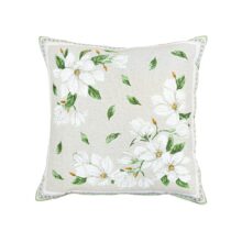 Jacquard cushion cover with white Magnolia pattern.