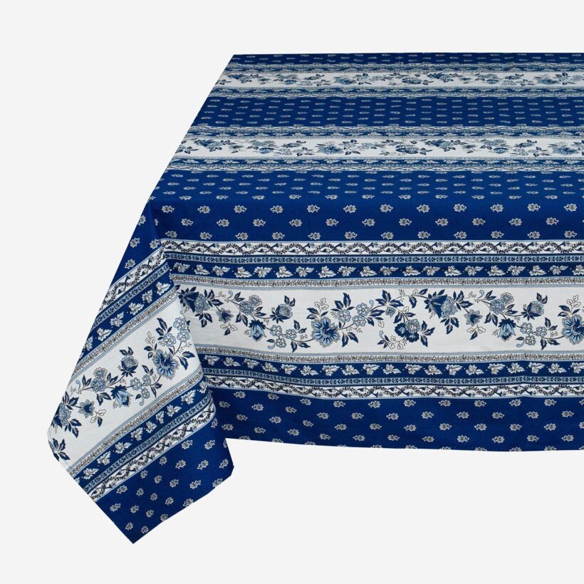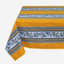 La collection AVIGNON a été retravaillée. La rayure « zigzag » a été remplacée par de l’allover pour alléger le dessin. La couleur de fond des bandes florales sont maintenant blanches, ce qui modernise ce dessin. Le nouveau modèle AVIGNON présente « 2 chemins » sur le centre de la table et une bordure sur la retombée de la nappe.